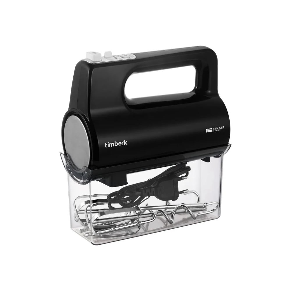 Миксер Timberk 700 Вт, 5 скоростных режимов, режим Турбо, кейс для хранения насадок и шнура, 2 венчика и 2 крюка T-HM40S50 предназначен для бытового применения. Подходит для приготовления теста, крема, соусов. Прост в использовании, за счет чего не требует специальных навыков. Насадки миксера легко снимаются, что облегчает уход.