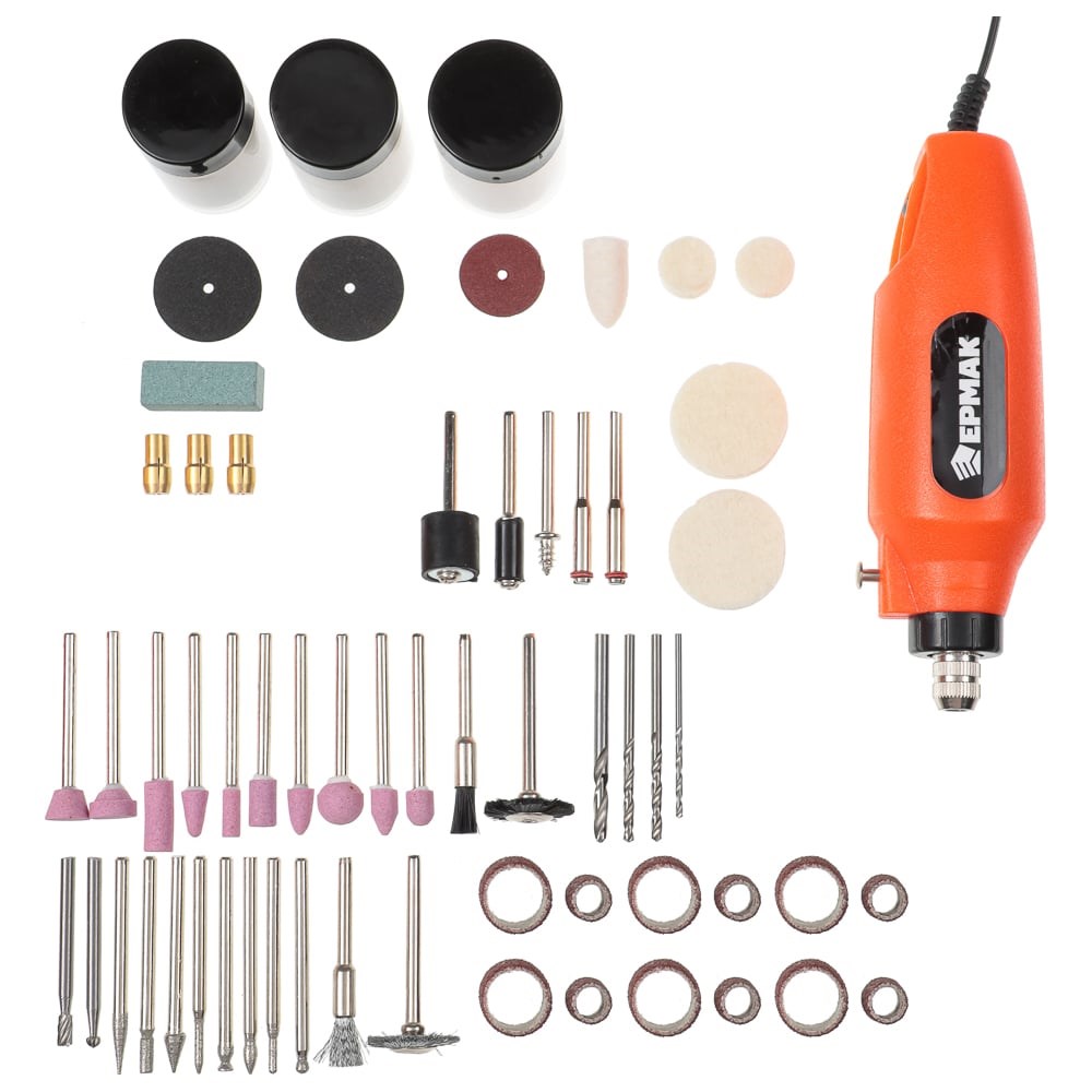 Мини-дрель ЕРМАК — это универсальный инструмент, который подойдёт для выполнения различных задач. С его помощью вы сможете выполнять такие работы, как нанесение гравировки, финишная шлифовка, сглаживание острых граней или заусенцев, сверление небольших отверстий. Инструмент оснащён щеточным двигателем мощностью 12 Вт и способен развивать скорость до 15000 об/мин. Это позволяет ему эффективно справляться с различными материалами. Благодаря широкому выбору насадок мини-дрель ЕРМАК станет незаменимым помощником в вашем арсенале инструментов.