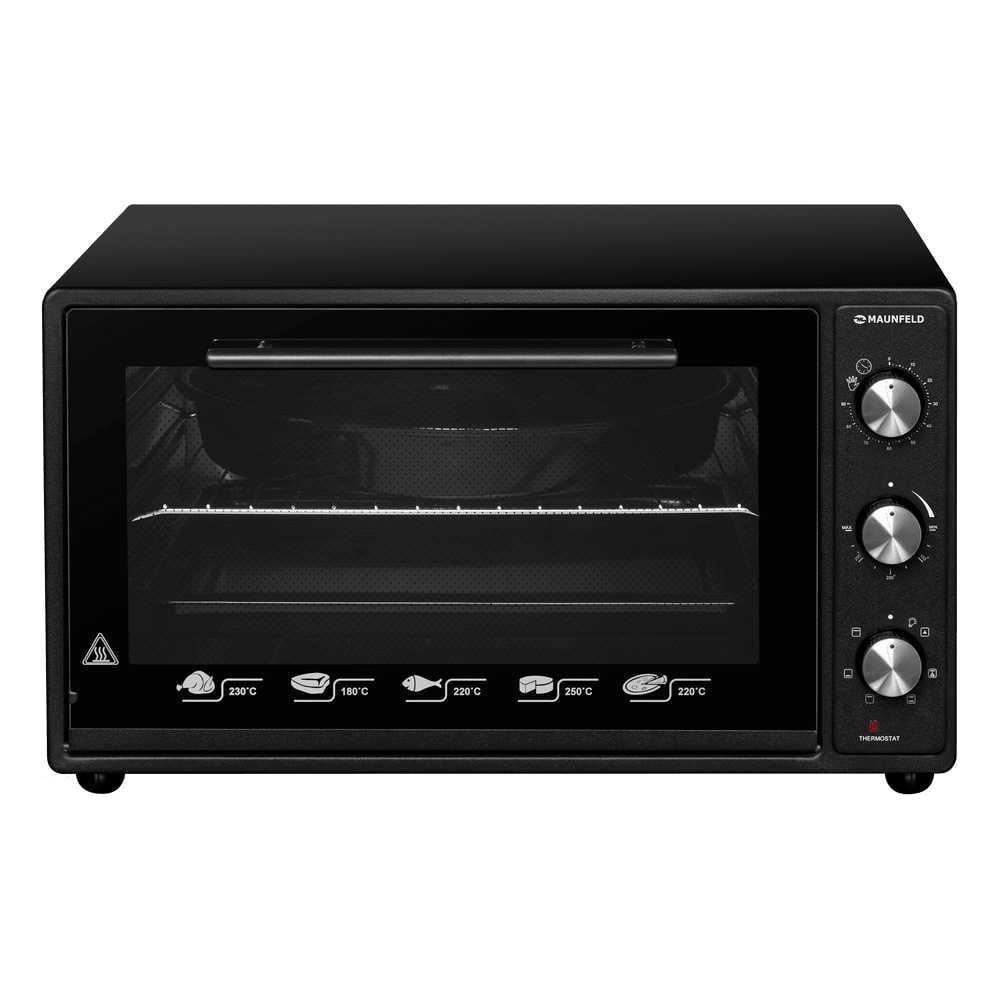 Полезный объем мини-печи довольно большой – целых 45 литров, готовить можно одновременно на 3 уровнях. Пользователь может использовать традиционный верхний и нижний нагрев, комбинируя их с функциями конвекции и гриля. Всего предусмотрено 7 функций приготовления. Благодар яркой подсветке можно хорошо рассмотреть содержимое всех противней и контролировать процесс готовки, не открывая дверцу. Мини-печь оснащена таймером, автоматически отключающим прибор по окончании времени приготовления. Полная теплоизоляция корпуса позволяет удерживать и сохранять тепло внутри печи. Скрытый нижний нагревательный элемент предотвращает попадание крошек и жира, делает еще более безопасным приготовление и извлечение пищи. Позволяет использовать нижнюю часть печи, тем самым увеличивая количество уровней для приготовления. Благодаря высокой температуре гриля пища быстро подрумянивается, приобретает красивую поджаристую корочку, оставаясь нежной и сочной внутри. Автоотключение - функция, которая автоматически отключает мини-печь в случае, если пользователь забыл это сделать сам. Время экстренного отключения зависит от заранее выбранной температуры. Специальный звуковой сигнал оповестит о том, что прошло определенное количество времени с момента начала использования мини-печи. Режим конвекции обеспечивает постоянную циркуляцию горячего воздуха по всей камере, что позволяет равномерно запекать блюдо со всех сторон, а также экономить время.