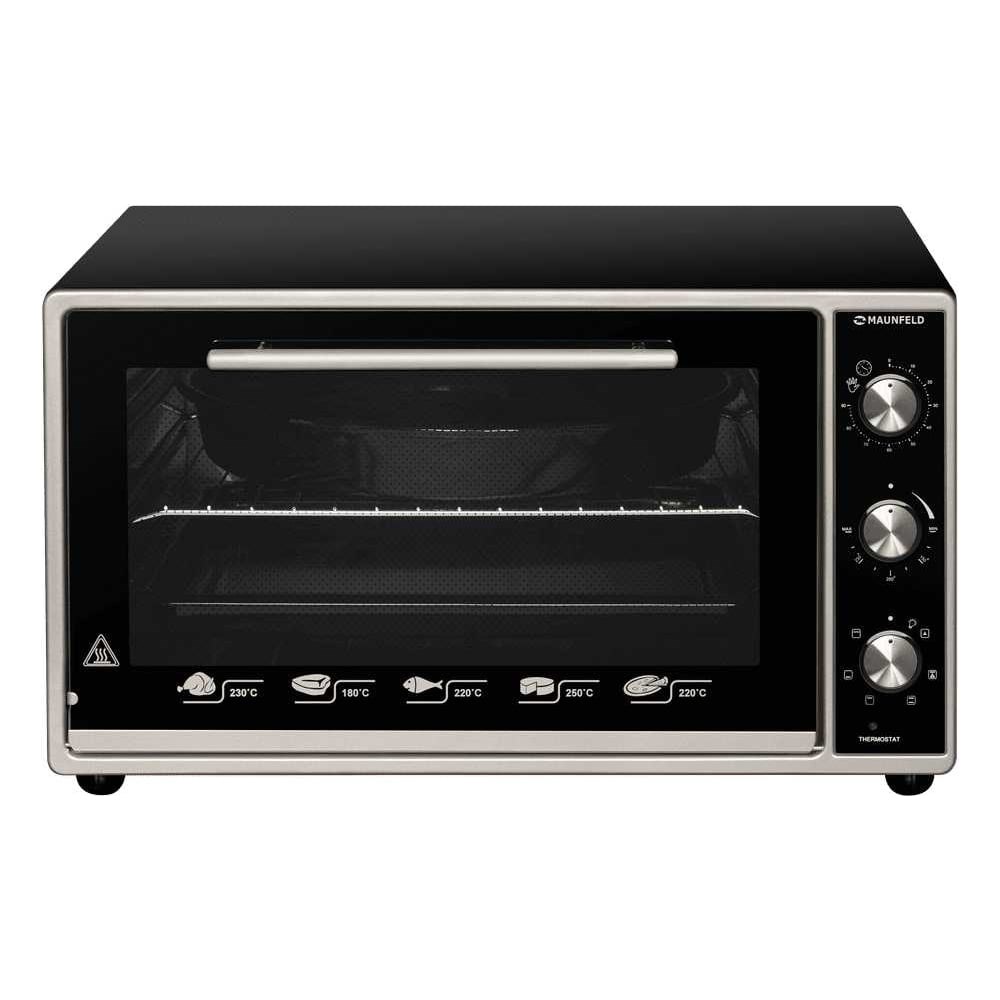 Полезный объем мини-печи довольно большой – целых 45 литров, готовить можно одновременно на 3 уровнях. Пользователь может использовать традиционный верхний и нижний нагрев, комбинируя их с функциями конвекции и гриля. Всего предусмотрено 7 функций приготовления. Благодар яркой подсветке можно хорошо рассмотреть содержимое всех противней и контролировать процесс готовки, не открывая дверцу. Мини-печь оснащена таймером, автоматически отключающим прибор по окончании времени приготовления. Скрытый нижний нагревательный элемент предотвращает попадание крошек и жира, делает еще более безопасным приготовление и извлечение пищи. Позволяет использовать нижнюю часть печи, тем самым увеличивая количество уровней для приготовления. Благодаря высокой температуре гриля пища быстро подрумянивается, приобретает красивую поджаристую корочку, оставаясь нежной и сочной внутри. Автоотключение - функция, которая автоматически отключает мини-печь в случае, если пользователь забыл это сделать сам. Время экстренного отключения зависит от заранее выбранной температуры. Специальный звуковой сигнал оповестит о том, что прошло определенное количество времени с момента начала использования мини-печи. Режим конвекции обеспечивает постоянную циркуляцию горячего воздуха по всей камере, что позволяет равномерно запекать блюдо со всех сторон, а также экономить время. Утапливаемые поворотные ручки PUSH PULL - гармонично вписываются в переднюю панель, упрощают чистку и делают невозможным случайное включение мини-печи.