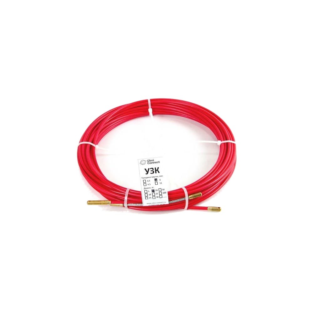 Протяжка для кабеля мини OlmiOn УЗК d=3,5 мм L=90 м в бухте, красный СП-Б-3,5/90 (устройство для закладки кабеля) в бухте - это самое простое, бюджетное, но при этом качественное и надёжное решение проблемы протяжки кабеля в металлорукава, трубы, короба и каналы при проведении монтажных работ по прокладке проводки для установки видеонаблюдения, систем контроля доступа, домофонов, охранной сигнализации, а также линий связи (интернет, телефон) в офисах, жилых и промышленных помещениях. Устройство представляет собой стеклопластиковый пруток (произведённый в Германии), который снаружи покрыт специальной защитной оболочкой, выполненной из износостойкого полиэтилена высокой плотности. С одной стороны УЗК находится наконечник из латуни, на который в каждом конкретном случае, в зависимости от условий протяжки, можно накрутить жёсткую или гибкую насадку (последняя наиболее удобна для использования в каналах уже наполненных большим количеством кабелей или с высоким числом изгибов), а с другой стороны жёстко закреплён наконечник (также из латуни) для фиксации кабеля, который необходимо протянуть. Насадки в комплекте: тип 1 и 2 (жёсткая и гибкая). Минимальный радиус изгиба: 25-30 мм. Общий диаметр протяжки: 3,5 мм.