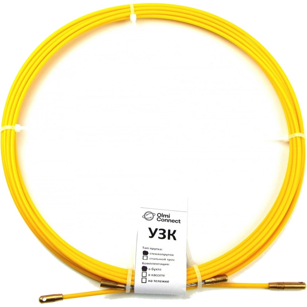 Протяжка для кабеля мини OlmiOn УЗК d=4,5 мм L=15 м в бухте, желтый СП-Б-4,5/15 (устройство для закладки кабеля) в бухте - это самое простое, бюджетное, но при этом качественное и надёжное решение проблемы протяжки кабеля в металлорукава, трубы, короба и каналы при проведении монтажных работ по прокладке проводки для установки видеонаблюдения, систем контроля доступа, домофонов, охранной сигнализации, а также линий связи (интернет, телефон) в офисах, жилых и промышленных помещениях. Устройство представляет собой стеклопластиковый пруток (произведённый в Германии), который снаружи покрыт специальной защитной оболочкой, выполненной из износостойкого полиэтилена высокой плотности. С одной стороны УЗК находится наконечник из латуни, на который в каждом конкретном случае, в зависимости от условий протяжки, можно накрутить жёсткую или гибкую насадку (последняя наиболее удобна для использования в каналах уже наполненных большим количеством кабелей или с высоким числом изгибов), а с другой стороны жёстко закреплён наконечник (также из латуни) для фиксации кабеля, который необходимо протянуть. В комплекте с мини УЗК жёсткая и гибкая насадки. Минимальный радиус изгиба протяжки: 25 мм-30 мм. Общий диаметр прутка: 4,5 мм. Поставляются в двух цветовых вариантах на выбор: Желтые, Красные