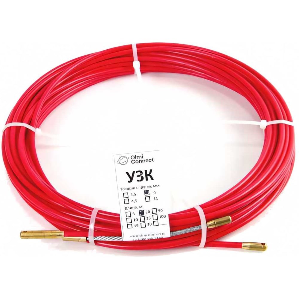 Протяжка для кабеля мини OlmiOn УЗК d=3,5 мм L=30 м в бухте, красный СП-Б-3,5/30 (устройство для закладки кабеля) в бухте - это самое простое, бюджетное, но при этом качественное и надёжное решение проблемы протяжки кабеля в металлорукава, трубы, короба и каналы при проведении монтажных работ по прокладке проводки для установки видеонаблюдения, систем контроля доступа, домофонов, охранной сигнализации, а также линий связи (интернет, телефон) в офисах, жилых и промышленных помещениях. Устройство представляет собой стеклопластиковый пруток (произведённый в Германии), который снаружи покрыт специальной защитной оболочкой, выполненной из износостойкого полиэтилена высокой плотности. С одной стороны УЗК находится наконечник из латуни, на который в каждом конкретном случае, в зависимости от условий протяжки, можно накрутить жёсткую или гибкую насадку (последняя наиболее удобна для использования в каналах уже наполненных большим количеством кабелей или с высоким числом изгибов), а с другой стороны жёстко закреплён наконечник (также из латуни) для фиксации кабеля, который необходимо протянуть. Насадки в комплекте: тип 1 и 2 (жёсткая и гибкая). Минимальный радиус изгиба: 25-30 мм. Общий диаметр протяжки: 3,5 мм.