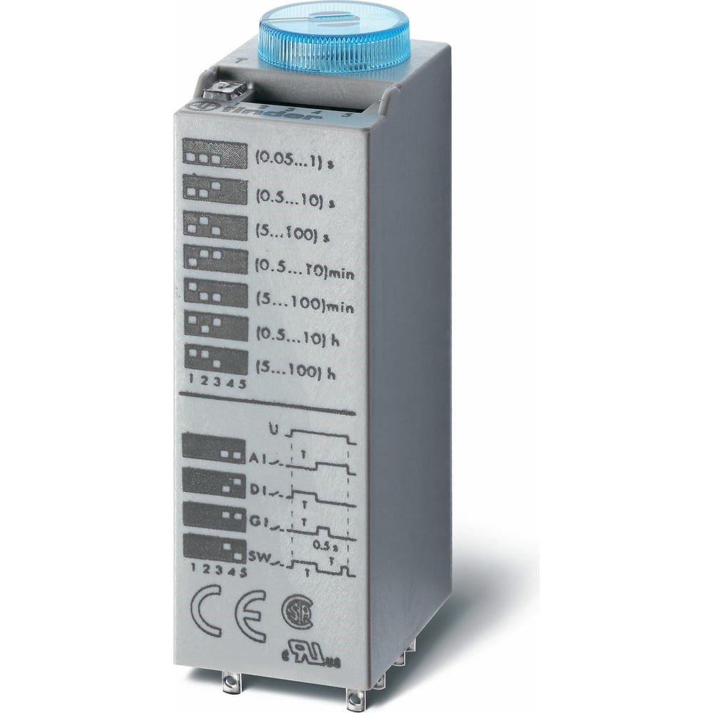 Дополнительные характеристики миниатюрного съемного реле времени Finder функц: Ai, Di, gi, sW, 4 CO конт. 7а, 850400240000: Номинальное напряжение катушки - 24 В. Семь временных шкал от 0.05 с до 100 ч. Питание AC/DC не поляризованное. Монтаж в розетки 94 серии. Функции: AI: Задержка включения, DI: Интервалы, SW: Симметричный повтор цикла (начальный импульс ВКЛ), GI: Импульсы с задержкой. Контактная группа - 4CO.