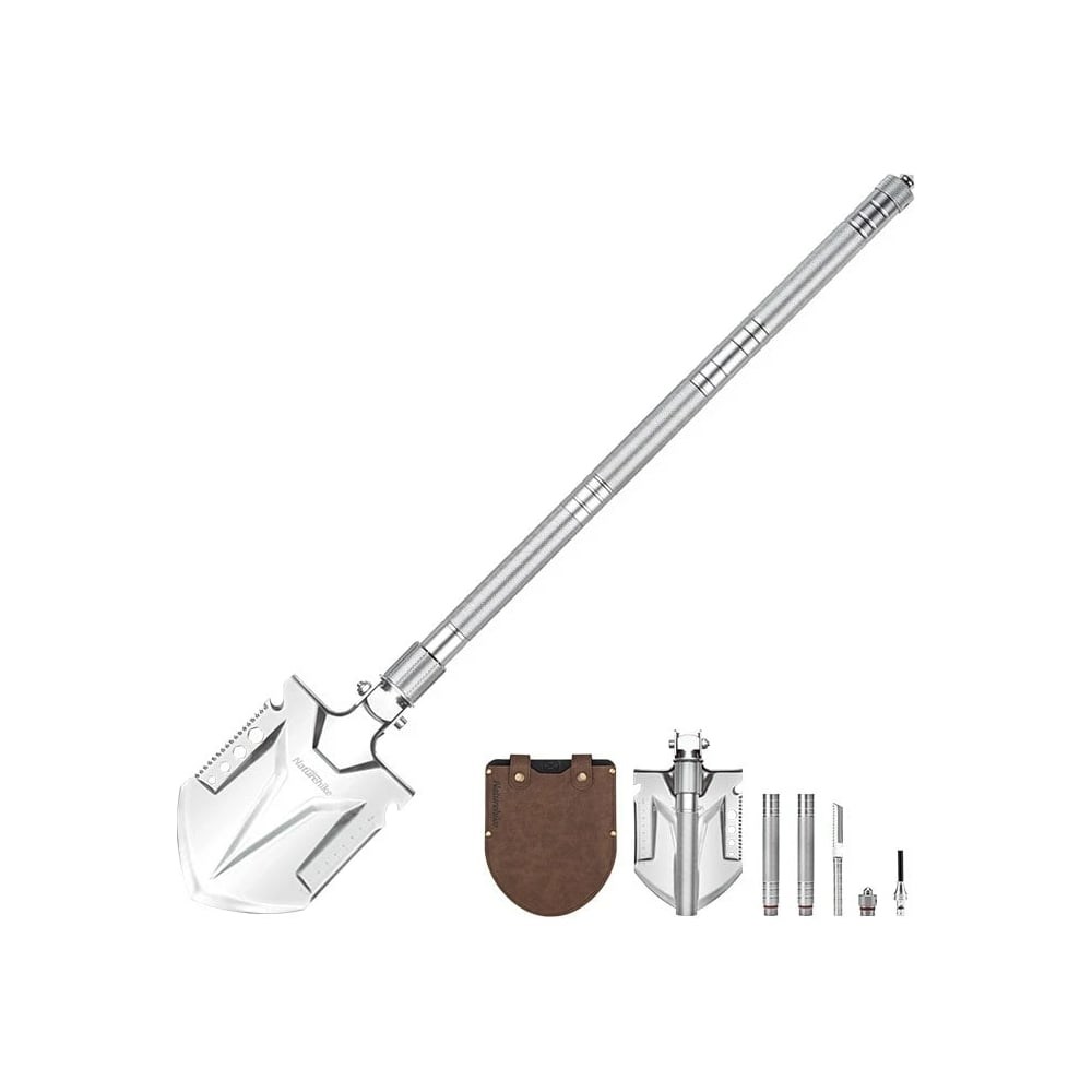Многофункциональная лопата Naturehike NH20GJ002 серебряная 6927595761847 подходит для применения в туризме и разных видах активного отдыха. Цвет модели – серебристый. Это прочная и надёжная лопата, в основе которой – качественные и износостойкие материалы. А именно: специальная сталь марки 3Cr13, сплав алюминия, углеродная сталь, магниевый стержень. Портативное изделие облегчает туристический быт. Конструкция модели сделана таким образом, что она объединяет в себе несколько инструментов: пилу, открывашку для бутылок, лезвие ножа. Шестигранный ключ можно ослабить или затянуть. Наружные шестигранные гайки размерами 6, 8, 10, 12 миллиметров. В хвостовой части изделия предусмотрен молот выживания из углеродистой стали. Ослабьте резьбу на ручке и поверните головку лопаты, лопата превратится в кирку.