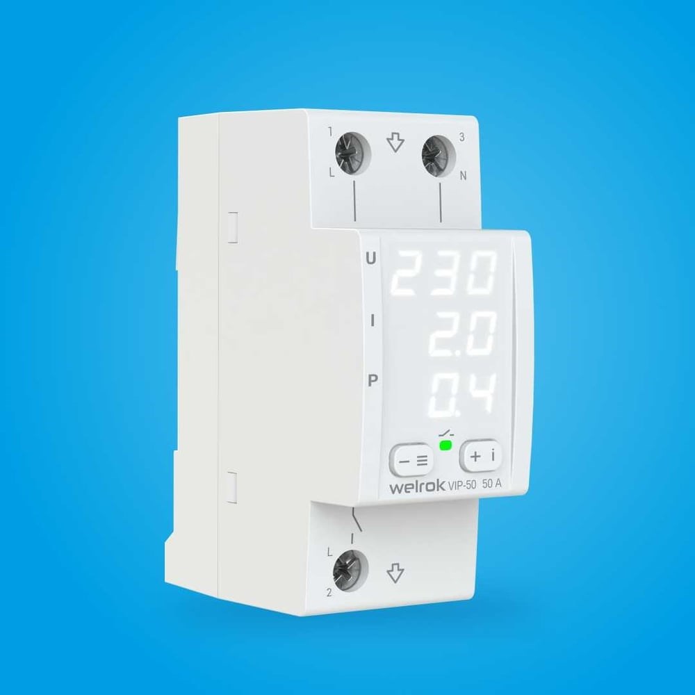 Многофункциональное реле Welrok VIP защищает оборудование от скачков и провалов напряжения, последствий обрыва нулевого провода и превышения тока или полной мощности. Реле отключает нагрузку, если напряжение, ток или мощность выходит за установленные пределы и автоматически включает нагрузку, когда значение параметра вернется в норму. Используется для уменьшения количества срабатываний: Защита от частых срабатываний. Регулируемый гистерезис. Регулируемая задержка включения нагрузки. Профессиональная модель отключения при выходе напряжения за пределы. Используется для анализа питающей сети по характеру аварийных срабатываний: Энергонезависимый журнал срабатываний на 100 значений. Используется для комфортной и безопасной эксплуатации: Поправка напряжения и тока на экране. Регулировка яркости экрана. Защита от перегрева. Блокировка кнопок. Сохранение настроек в энергонезависимой памяти. Номинальное напряжение = 220(230) В Max сечение провода = 16.000 мм Термозащита = есть Задержка отключения = есть TrueRMS = есть Номинальная мощность нагрузки = 11000.000 В*А Время отключения нагрузки при превышении напряжения = 0.030 с Время отключения нагрузки при снижении напряжения (не более) = 10.000 с Время задержки включения нагрузки = 600.000 с Количество коммутаций без нагрузки (не менее) = 500000 Количество коммутаций под нагрузкой (не менее) = 10000 Количество фаз = 1 Индикация = LED-дисплей