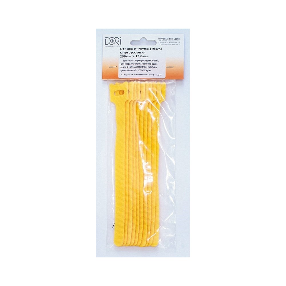 Многоразовая стяжка-липучка DORI 200x12 мм желтая 10 шт 42235
