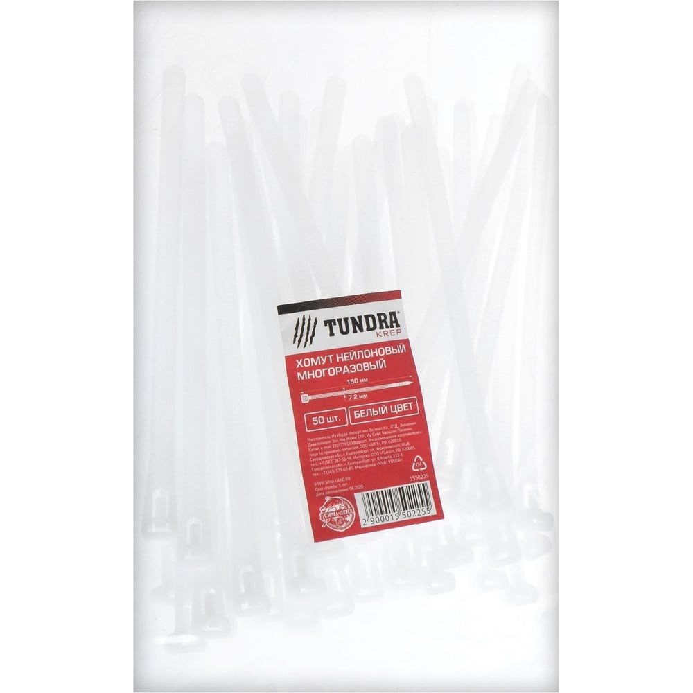 Нейлоновый многоразовый хомут ТУНДРА 7.2х150 мм, белый, в упаковке 50 шт. 1550225