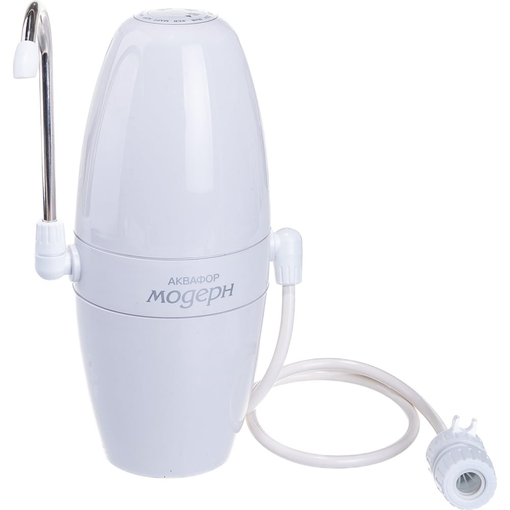 Многоступенчатый водоочиститель Аквафор Модерн исп.4 обеспечивает эффективное очищение водопроводной воды от активного хлора, солей жесткости, свинца, кадмия, фенолов, бензолов, пестицидов. Подключение очистителя к крану может быть как временным, так и постоянным, что обеспечивается насадкой с переключателем.