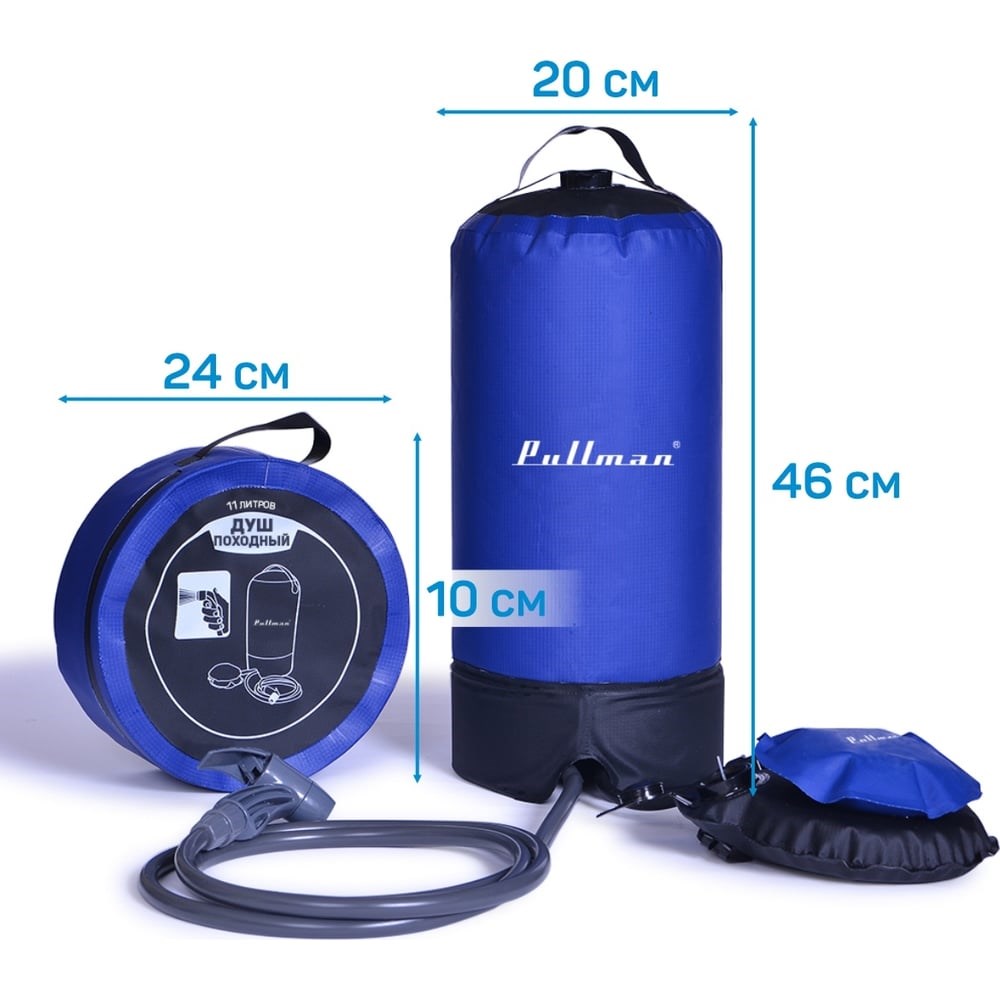 Душ походный переносной Pullman PL-PW11L - гигиенический аксессуар для кемпинга и отдыха, идеально подходит для использования на даче или в походных условиях. Переносной душ Pullman может быть использован и в повседневных условиях, если вам нужно помыть домашних питомцев, автомобиль, велосипед и многое другое. Воздушный насос создает напор воды – бак не требует подвешивания. Конструкция воздушного насоса имеет поддержку отскока. Душ для дачи с баком и насосом оснащён также шлангом длиной 200 см и насадкой лейки из ABS пластика. Преимуществом походного душа Pullman считается большой объем распылителя и мощная струя. Благодаря компактным размерам и легкому весу, он легко складывается в удобную сумку-переноску и будет всегда под рукой, когда вам понадобится освежиться на открытом воздухе. Для нагрева воды – просто оставьте наполненный бак на солнце на 2 часа.