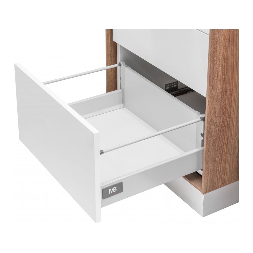 Modern Box имеет высокую ресурсоемкость, сертифицирован на 60 000 циклов (SGS). Она обеспечивает нагрузку до 40 кг и полное выдвижение в длину от 250 до 550 мм. Высокий комфорт продукта обеспечивает бесшумное закрывание и синхронизация направляющих. На ящике работает со всем спектром систем организации пространства, вставками для столовых ящиков. бесшумное закрывание – механизм не позволяет громогласно закрывать ящик, тихо закрывается; нагрузка до 40 кг – в них можно хранить продукты питания – сахар, муку, рис, а также крупногабаритное оборудование или тяжелую керамику; проверенные, сертифицированные продукты на 60 000 циклов; Полное выдвижение длиной от 250-550 мм позволит полностью выдвинуть ящик на длину всей направляющей, это чрезвычайно полезно для неглубоких ящиков, где доступ к задней части затруднён; синхронизация вождения направляющих обеспечивает высочайшее качество работы; широкий диапазон вертикальной и вертикальной регулировки ± 2мм; регулировка наклона фасада с использованием релинга в средних и высоких ящиках; удобная регулировка с внешней стороны ящика; возможность использования внутреннего фасада, дополнительных релингов и перфорированных сторон,