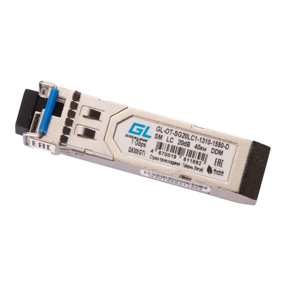 Модуль GIGALINK SFP, WDM, 1Гбит/c, одно волокно SM, LC, DDM, 20 дБ GL-OT-SG20LC1-1310-1550-D