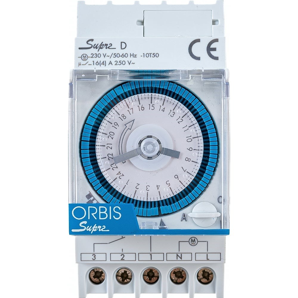 Модульное суточное реле времени Orbis SUPRA D OB290132N - электромеханический таймер в модульном исполнении. Используется для управления различными электроприборами по заданному расписанию.