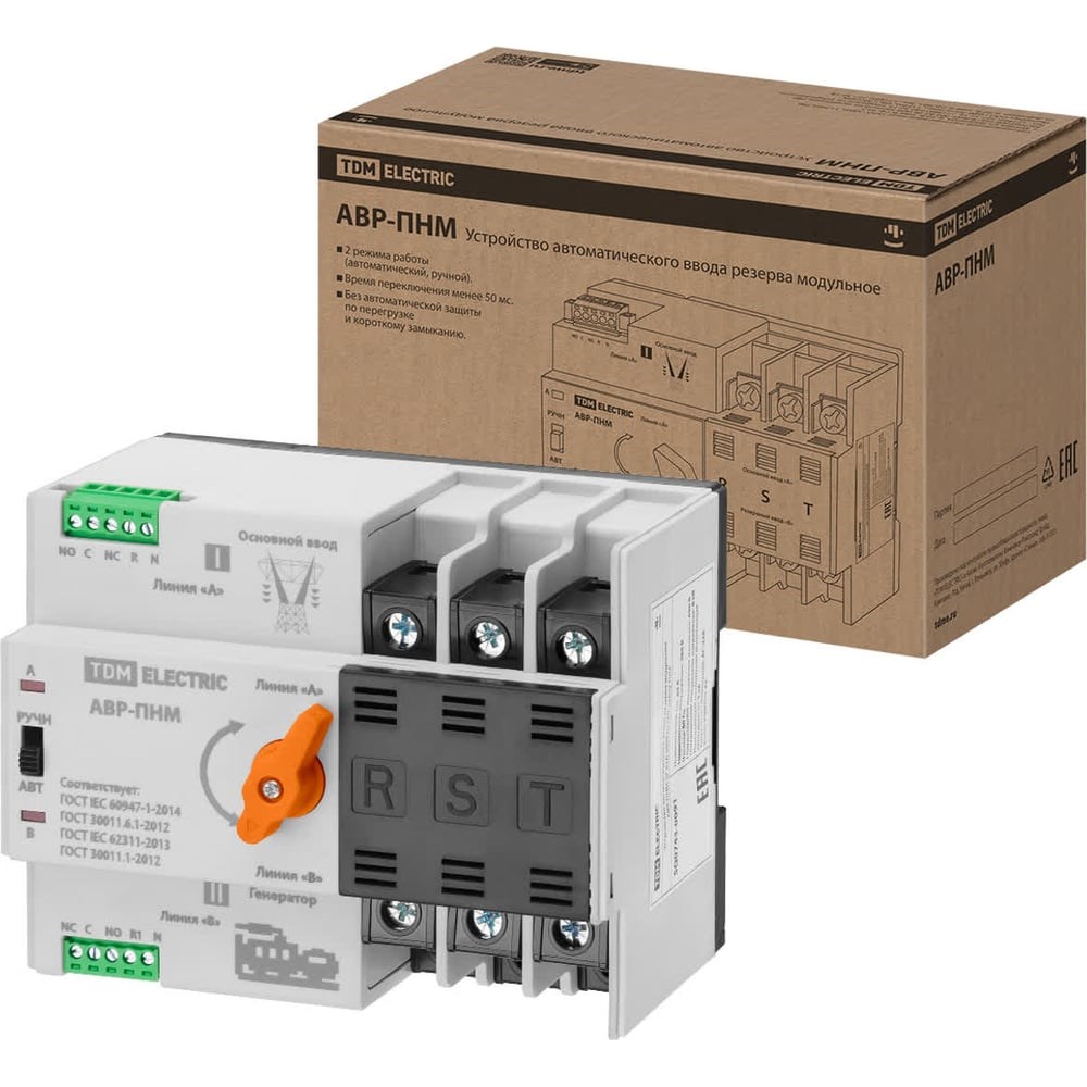 Устройство автоматического ввода резерва TDM ELECTRIC модульное АВР-ПНM 3P 63А 380В на DIN-рейку TDM SQ0743-0091