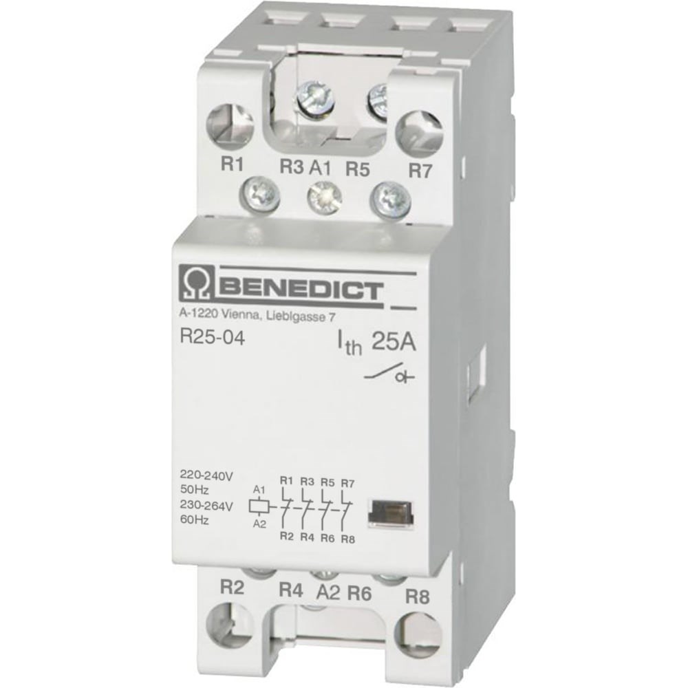 Модульный контактор Benedict R25-04 230 PN38942 предназначен для коммутации электрических цепей переменного тока. Может применяться в схемах управления осветительным, электронагревательным оборудованием, насосами и другими электрическими приборами.