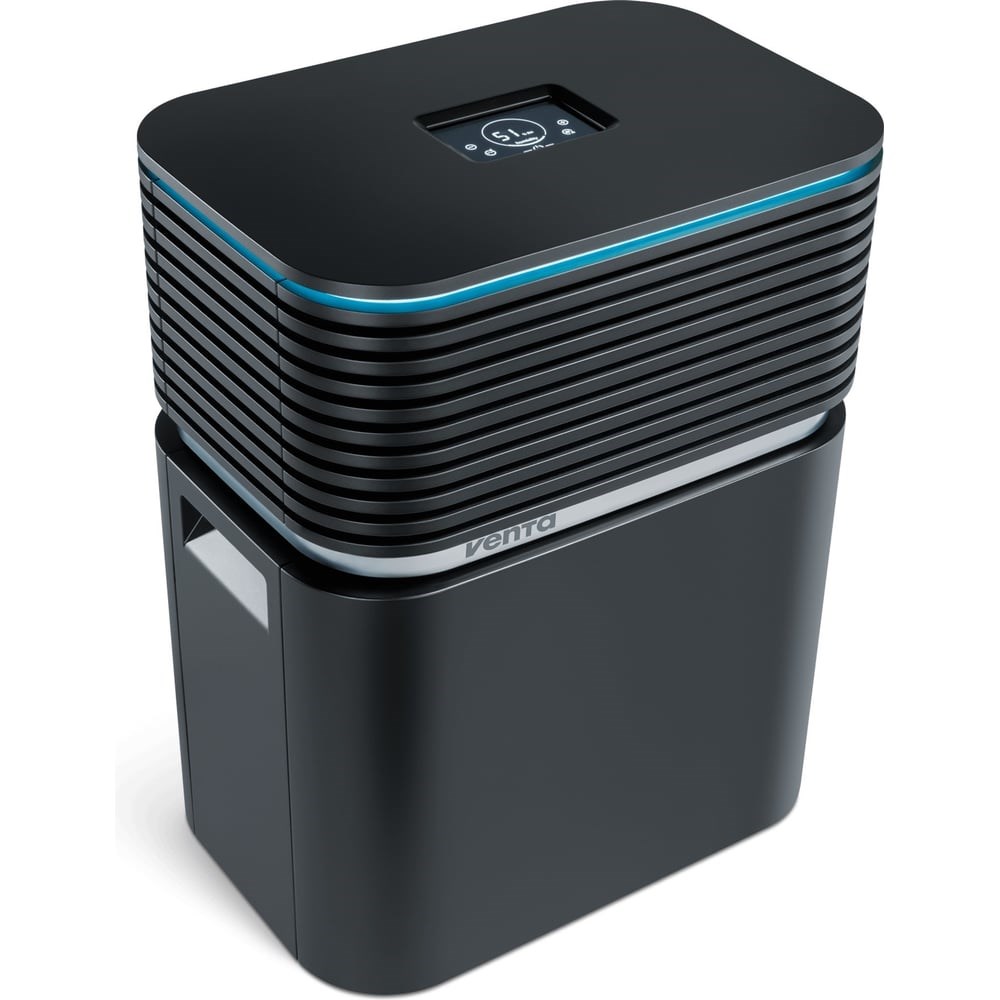 Мойка воздуха Venta AEROSTYLE LW74 WiFi очищает комнатный воздух по принципу холодного пара и очищает его от большинства аллергенов размером до 10 мкм (домашней пыли, пылевых клещей, пыльцы растений). При этом полностью исключено образование белого налета и конденсата на окружающих предметах. Площадь обслуживания Venta LW74 WiFi – 90 кв.м при высоте потолка до 2,5 м. В мойку воздуха AEROSTYLE заливается обычная водопроводная вода, которая обеззараживается и смягчается при помощи гигиенического диска Venta. Прибор оснащен перфорированным пластинчатым барабаном, который обеспечивает высокую производительность увлажнения воздуха. НАСТРОЙКИ И УВЕДОМЛЕНИЯ СЕНСОРНОГО ДИСПЛЕЯ VENTA: 4 скорости работы вентилятора. Автоматический режим: выбор желаемой влажности воздуха в помещении в диапазоне 30% - 70% с шагом 5%. Ночной режим: дисплей затемняется и вентилятор переключается на первую скорость работы. Отображение текущей влажности воздуха в помещении. Индикатор WATER проинформирует об отсутствии воды в поддоне. Мойка воздуха автоматически отключается. Индикатор SERVICE напоминает о необходимость помыть аппарат. ПРИЛОЖЕНИЕ VENTA Управляйте вашей Venta AEROSTYLE, следите за влажностью воздуха и настраивайте цвет светодиодной подсветки корпуса удаленно при помощи смартфона и приложения Venta Home. УХОД ЗА VENTA AEROSTYLE Доливайте воду по мере испарения и каждые две недели споласкивайте поддон и пластинчатый барабан проточной водой. Каждые 4 месяца заменяйте гигиенический дискVenta.