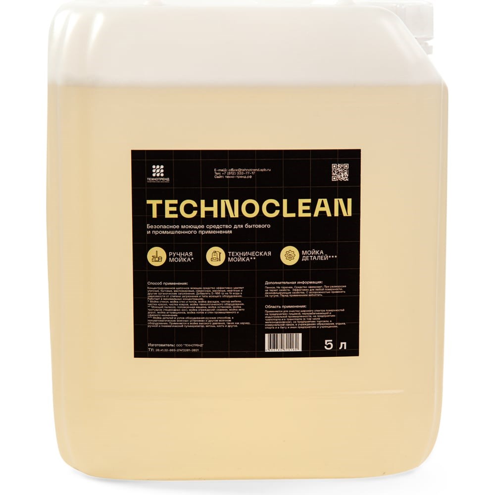 Моющее средство ЭКОАКТИВ TEHNOCLEAN 5 л 4603784315160 применяется на предприятиях пищевой, перерабатывающей и индустриальной промышленности, в транспорте, торговле, коммунальной сфере, в учреждениях образования, отдыха, спорта, в быту. Благодаря эффективному составу удаляет уличные, бытовые, масложировые, смазочные, масляные, нефтяные и другие органические загрязнения. Не токсично, поэтому подходит для ручного использования. Средство расходуется экономично, за счет чего прослужит долгое время.