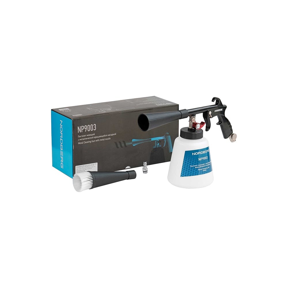 Пистолет моющий с металлическим вращающимся распылителем NORDBERG NP9003 – профессиональное оборудование для чистки салонов легковых автомобилей, среднего коммерческого и грузового транспорта. ФУНКЦИОНАЛ Благодаря металлической трубке-распылителю, описывающей круговые движения с помощью сжатого воздуха, и моющей жидкости эффективно вычищаются любые поверхности интерьера автомобиля: кожа, текстиль, пластик, резина и пр. УДОБСТВО ИСПОЛЬЗОВАНИЯ Гибкий заборный шланг внутри бачка и утяжелитель на его конце позволяют работать с пистолетом под любым углом, гарантируя постоянное попадание моющего средства в распылитель Эргономичная конструкция и небольшой вес Простое, интуитивно понятное использование УНИВЕРСАЛЬНОСТЬ Торнадор может применяться как для локального удаления загрязнений, так и использоваться при полной химчистке салона. Многофункциональный моющий пистолет NORDBERG NP9003 – высококачественное оборудование для решения различных задач детейлинга, позволяющее эффективно, легко и быстро удалять загрязнения.