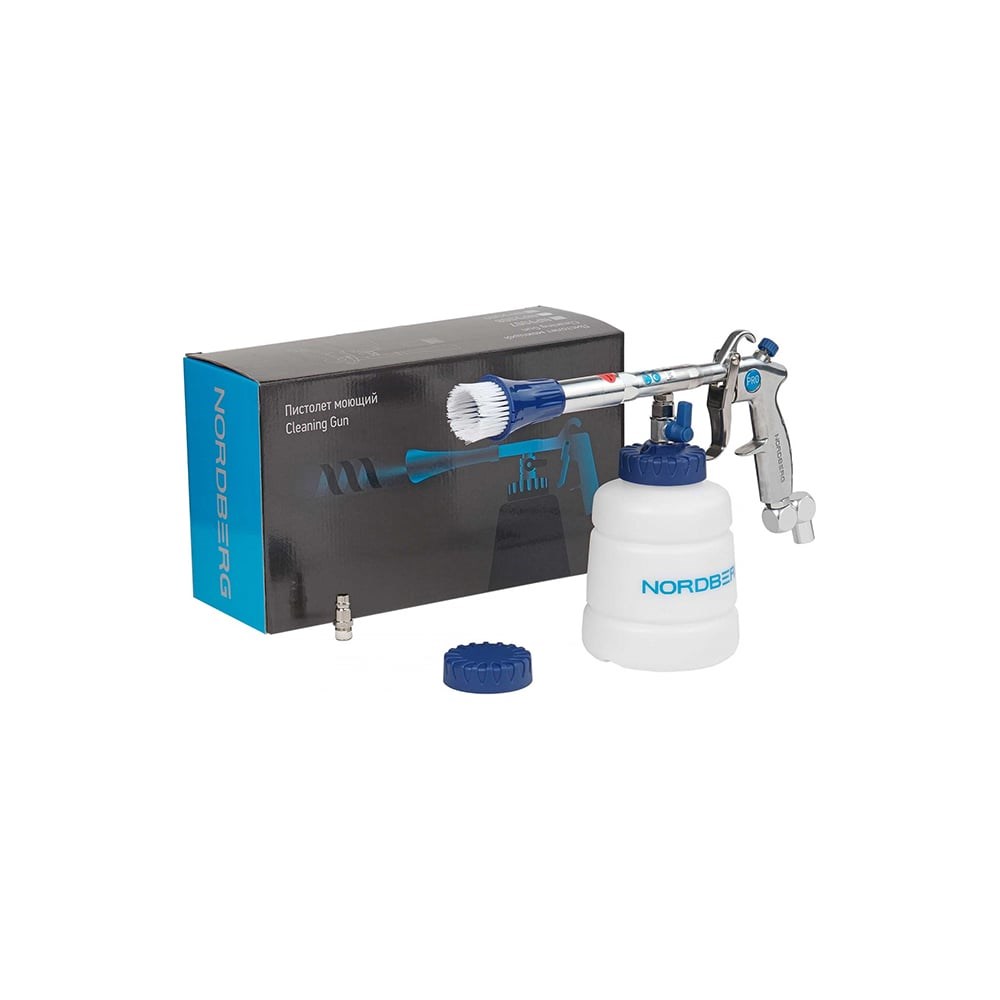 Пистолет моющий с пластиковым вращающимся распылителем NORDBERG NP9009 – профессиональное оборудование для чистки салонов легковых автомобилей, среднего коммерческого и грузового транспорта. ФУНКЦИОНАЛ Благодаря пластиковой трубке-распылителю, описывающей круговые движения с помощью сжатого воздуха, и моющей жидкости эффективно вычищаются любые поверхности интерьера автомобиля: кожа, текстиль, пластик, резина и пр. УДОБСТВО ИСПОЛЬЗОВАНИЯ Гибкий заборный шланг внутри бачка и утяжелитель на его конце позволяют работать с пистолетом под любым углом, гарантируя постоянное попадание моющего средства в распылитель Эргономичная конструкция и небольшой вес Простое, интуитивно понятное использование УНИВЕРСАЛЬНОСТЬ Торнадор может применяться как для локального удаления загрязнений, так и использоваться при полной химчистке салона. Многофункциональный моющий пистолет NORDBERG NP9009 – высококачественное оборудование для решения различных задач детейлинга, позволяющее эффективно, легко и быстро удалять загрязнения.