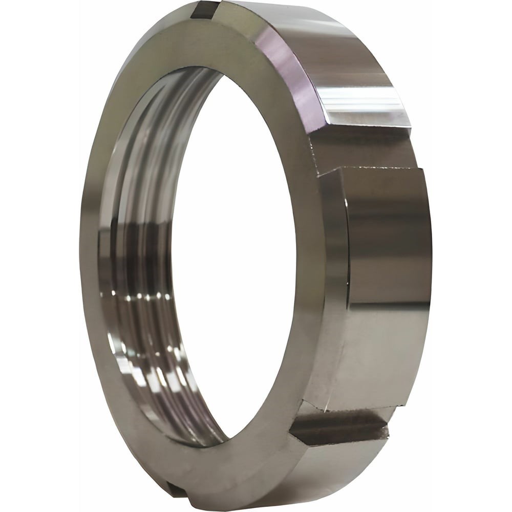 Молочная гайка TITAN LOCK по стандарту DIN 11851 DN10 нержавеющая сталь 304 TL10NUTS применяется в пищевой отрасли, на молочных предприятиях, при производстве алкогольных и безалкогольных напитков. Используется для быстрого соединения элементов трубопроводной системы, где требуется высокий уровень герметичности и защиты рабочей среды от контакта с воздухом. Молочная гайка является частью соединительной молочной муфты. Имеет специальную внутреннюю резьбу, при помощи которой крепится к трубопроводам, емкостям и различным элементам запорной арматуры. На наружной части находятся шлицы, с помощью которых гайка затягивается. Изделие выполнено по стандарту DIN 11851 из нержавеющей стали AISI 304.