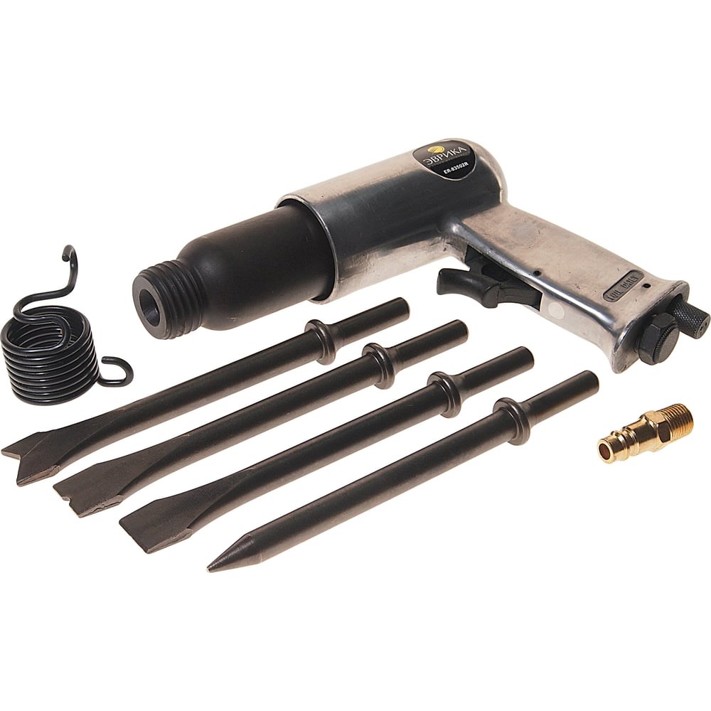 Пневмомолоток с набором зубил ЭВРИКА ER-83502R используется при демонтаже различных конструкций. Быстрая замена зубил экономит время оператора. Долгий срок службы обеспечивается благодаря металлическому корпусу. Курок на корпусе облегчает работу с прибором.