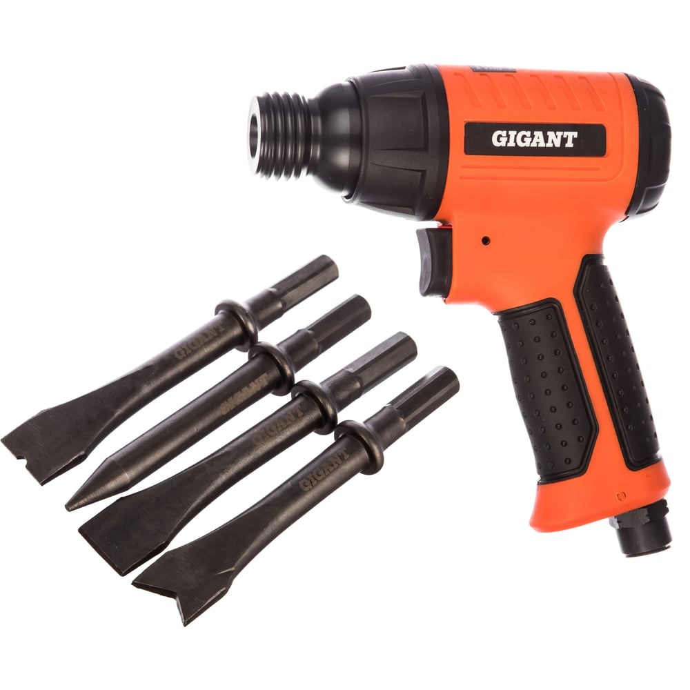 Пневмодолото Gigant RP4500 + 5 насадок используется при демонтаже различных конструкций. Комплектуется несколькими насадками, благодаря чему можно сразу приступить к работе. Долговечность. Зажимной механизм и поршень из стали обеспечивают продолжительный срок службы инструмента. Надежность. Обрезиненная рукоятка не скользит в руке, что способствует надежному хвату.