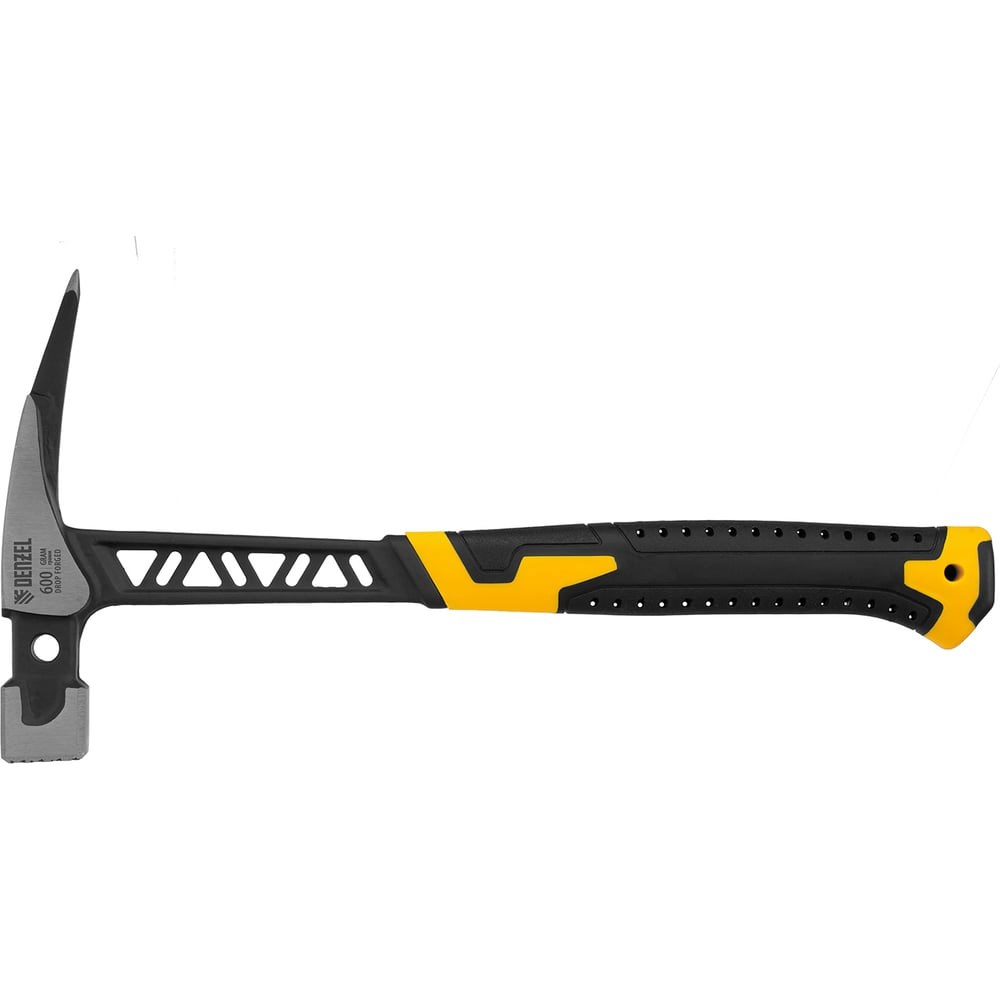 Цельнокованый молоток кровельщика с бойком весом 600 г, с магнитом и двухкомпонентной обрезиненной рукояткой, предназначен для проведения профессиональных кровельных работ. Благодаря особой конструкции позволяет проводить такие виды работ, как: выпрямление и извлечений гвоздей, пробивание отверстий в листовом металле, отгибание кромок. На рабочей поверхности бойка сделаны насечки для уменьшения риска соскальзывания при нанесении ударов по гвоздю.