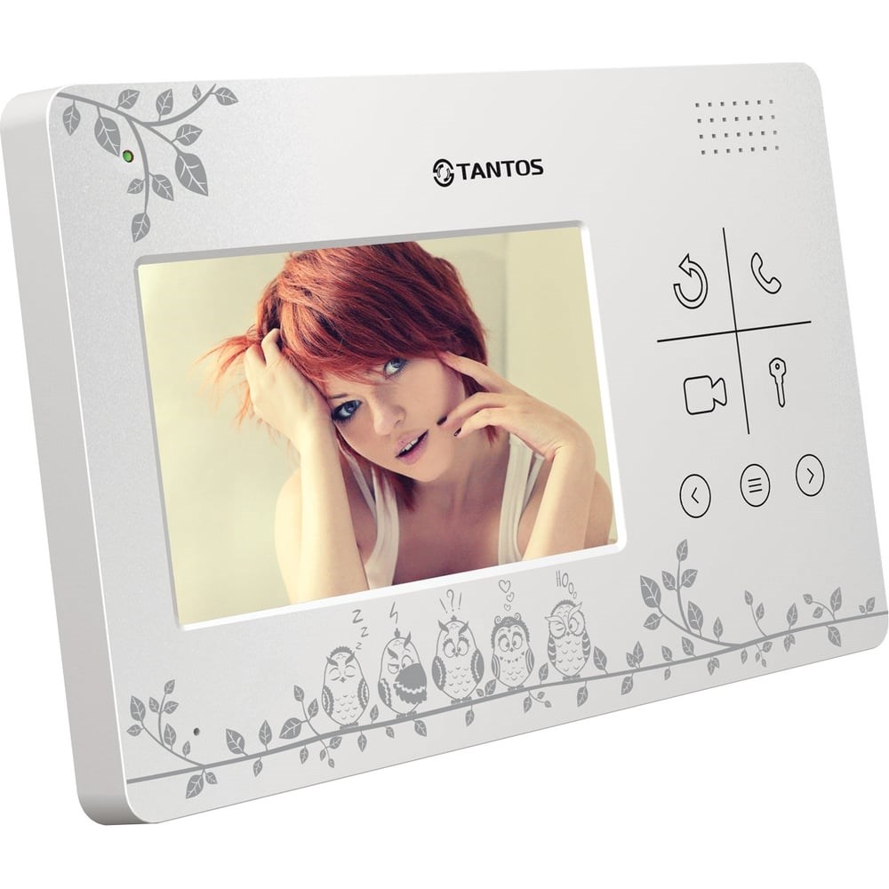 TANTOS LILU LE Совы – простой и изящный монитор домофона с рисунком на лицевой панели. Монитор имеет монитор диагональю 4”, имеет корпус толщиной всего 17 миллиметров.Управляется с помощью сенсорных кнопок.Есть выбор из 25 мелодий вызова.Совместим с большинством вызывных панелей, популярных на отечественном рынке, позволяет использовать до 4 мониторов в одной системе (с функциями общего вызова или адресного перевода вызова).Оснащен выносным адаптером питания с возможностью установки в стеновую монтажную коробку (подрозетник).Монитор выполнен в белом корпусе с забавным рисунком «Совы», который идеально подойдет, например, для детской.