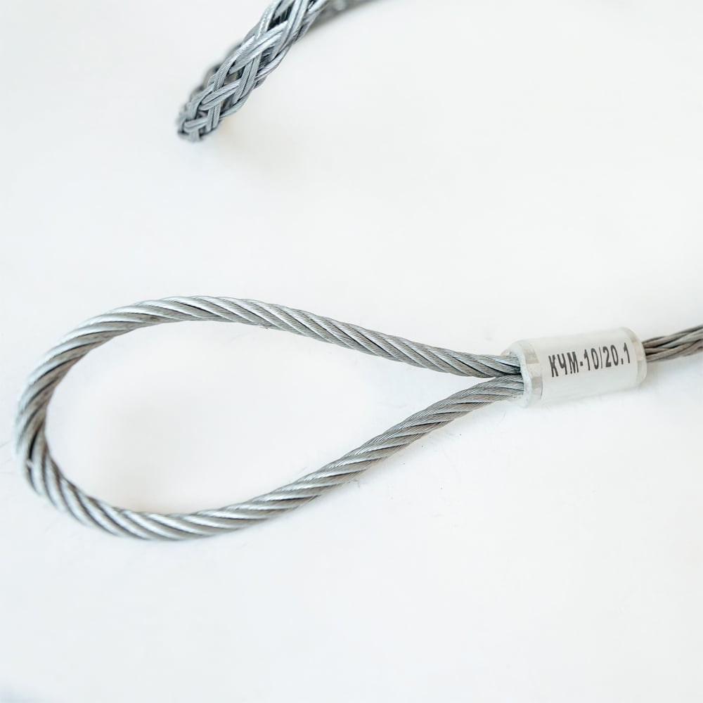 Кабельный монтажный чулок АПП ЭнергоМаш КЧМ-10*20 25118-017020 предназначен для временного захвата и надежного удержания конца кабеля определенного диаметра при проведении работ по подземной прокладке. Кабельный чулок представляет собой плетеную специальным образом конструкцию из оцинкованного стального каната в виде чулка с одной гибкой петлей в его изголовье. Принцип работы кабельного чулка основан на эффекте самозатягивания, чем выше нагрузка, тем сильнее схватывание.
