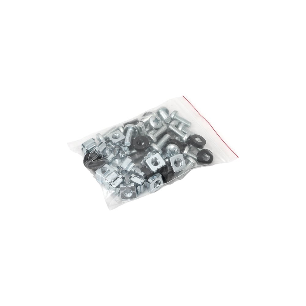 Комплект монтажный TERACOM для 19” оборудования и телекоммуникационных шкафов включает в себя комплект из трех позиций: винт М6 длиной 16 мм, квадратная клетьевая гайка М6, пластиковая шайба. Применяется для сборки и монтажа телекоммуникационных шкафов и стоек, установки в них на монтажные rack-стойки 19-дюймового оборудования, крепления внутри шкафов на стойки и боковые профили прочего оборудования и аксессуаров, PDU, органайзеров. Винты и гайки выполнены из качественной стали, имеют цинковое покрытие толщиной 6 мкм. Квадратные гайки полностью совместимы с минимальными квадратными отверстиями 9х9 мм и легко вставляются в них. Пластиковая шайба М6 изготовлена из ABC-пластика, имеет черный цвет и предотвращает дорогостоящее активное оборудование от повреждения шляпкой винта лицевой стороны в процессе монтажа.