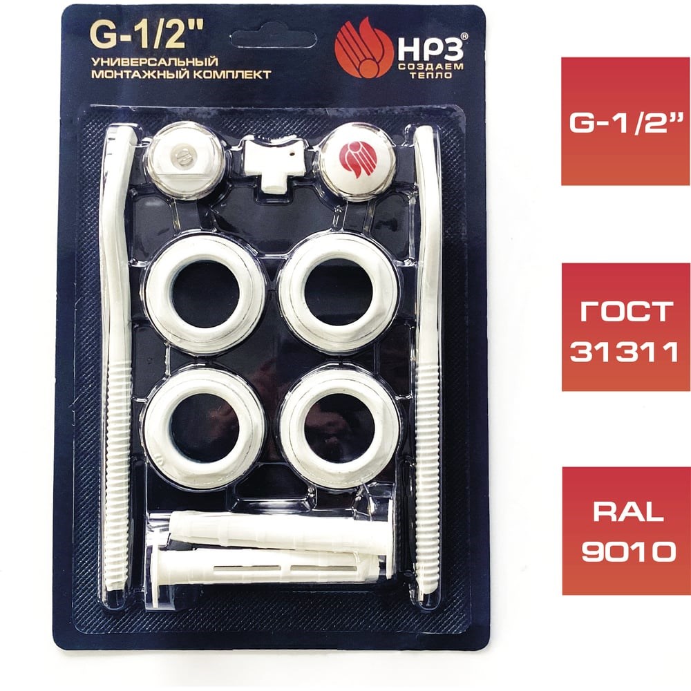 Универсальный монтажный комплект НРЗ для подключения радиатора. Предназначен для проведения монтажа алюминиевых и биметаллических батарей секционного типа.Монтажный набор НРЗ позволяет обеспечить подключение радиатора к трубопроводу - выполнить переход с выхода батареи диаметром 1 дюйм на трубу диаметром 1/2 дюйма.Резьбы выполнены по ГОСТ, класс точности “В”.Износостойкое лакокрасочное покрытие переходников RAL9010.Изоляционные материалы комплекта устойчивы к воздействию агрессивной среды.Использование такого оборудования дает возможность быстро и надежно подключать отопительный прибор к магистралям трубопровода.Соответствует требованиям ГОСТ 31311.