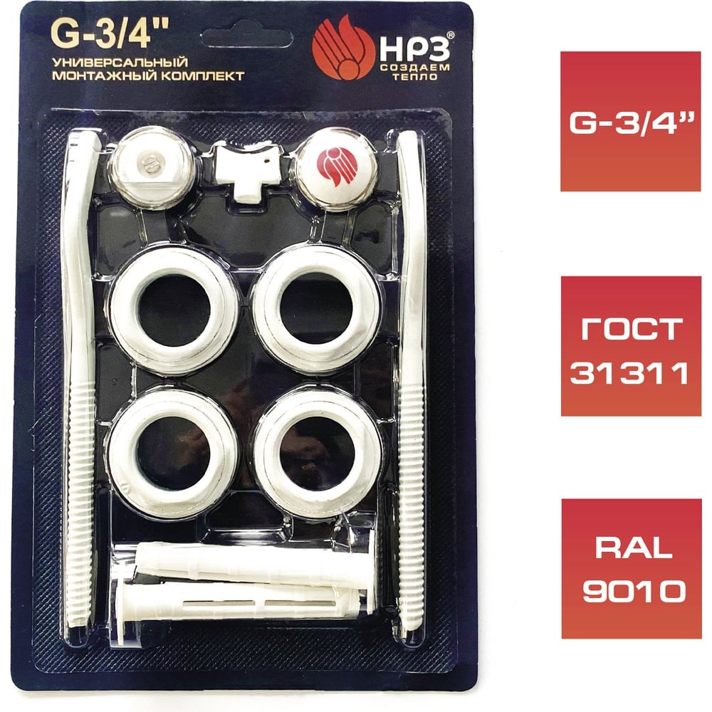Универсальный монтажный комплект НРЗ для подключения радиатора. Предназначен для проведения монтажа алюминиевых и биметаллических батарей секционного типа.Монтажный набор НРЗ позволяет обеспечить подключение радиатора к трубопроводу - выполнить переход с выхода батареи диаметром 1 дюйм на трубу диаметром 3/4 дюйма.Резьбы выполнены по ГОСТ, класс точности “В”.Износостойкое лакокрасочное покрытие переходников RAL9010.Изоляционные материалы комплекта устойчивы к воздействию агрессивной среды.Использование такого оборудования дает возможность быстро и надежно подключать отопительный прибор к магистралям трубопровода.Соответствует требованиям ГОСТ 31311.