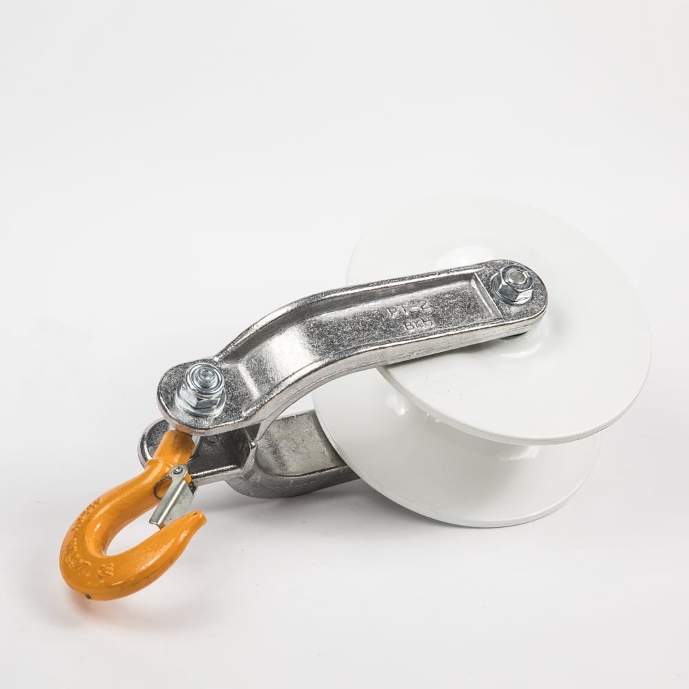 Монтажный ролик АПП ЭнергоМаш РТ-2 12312-008060 используется для раскатки самонесущих изолированных проводов, прокладки оптического кабеля на линиях электропередачи, обустройства контактной сети железных дорог, уличного освещения и линий общественного электротранспорта. Используется на промежуточных опорах. Подвес устройства осуществляется при помощи специального поворотного крюка, непосредственно к арматуре крепления СИП.