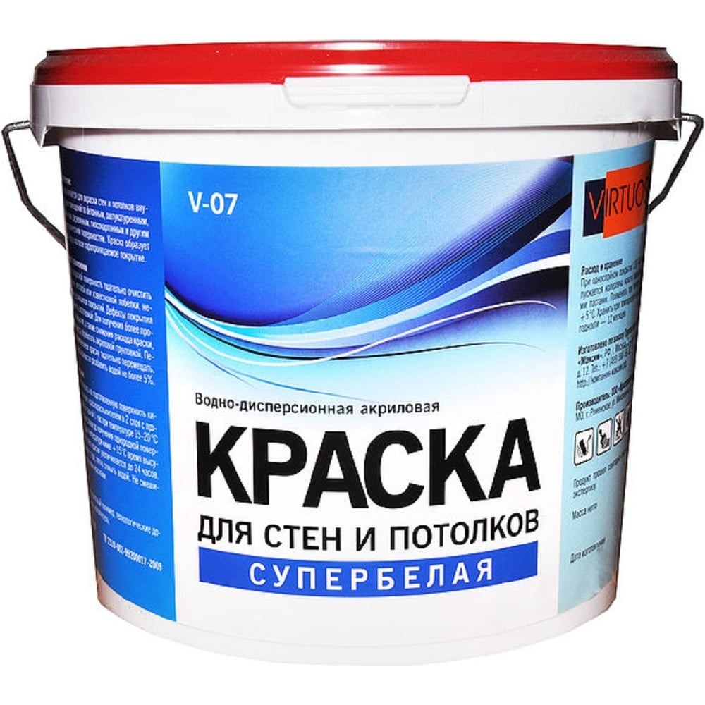 Краска для стен и потолков Virtuoso V-07 А супербелая, морозостойкая, 14 кг 25239 предназначена для высококачественной отделки стен и потолков внутри жилых и административных помещений. Подходит для бетона, штукатурки, гипса, гипсокартона, кирпича, дерева, ДСП, ДВП, обои под покраску. Образует матовое дышащее покрытие повышенной белизны.