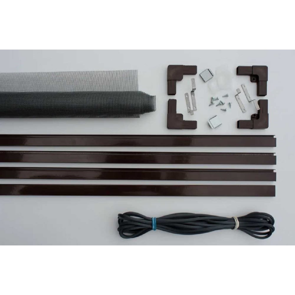 Москитная сетка KOMFORT Комплект №3, 1550х800 мм, коричневая НС00608 предназначена для защиты от насекомых, атмосферных осадков, листвы, пуха. Комплект оснащён полным набором, необходимым для самостоятельной сборки москитной сетки. Крепления устанавливаются на москитную сетку.