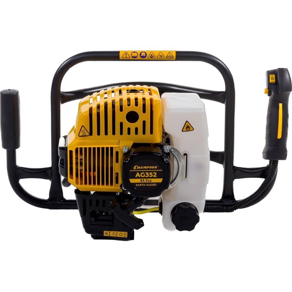 Мотобур Champion AG352 оснащен 2-х тактным двигателем с воздушным охлаждением. Имеет прочную раму с рукоятками, на одну из которых выведены органы управления, что улучшает контроль над инструментом. На данный мотобур устанавливаются шнеки для льда и почвы диаметром от 60 до 250 мм.