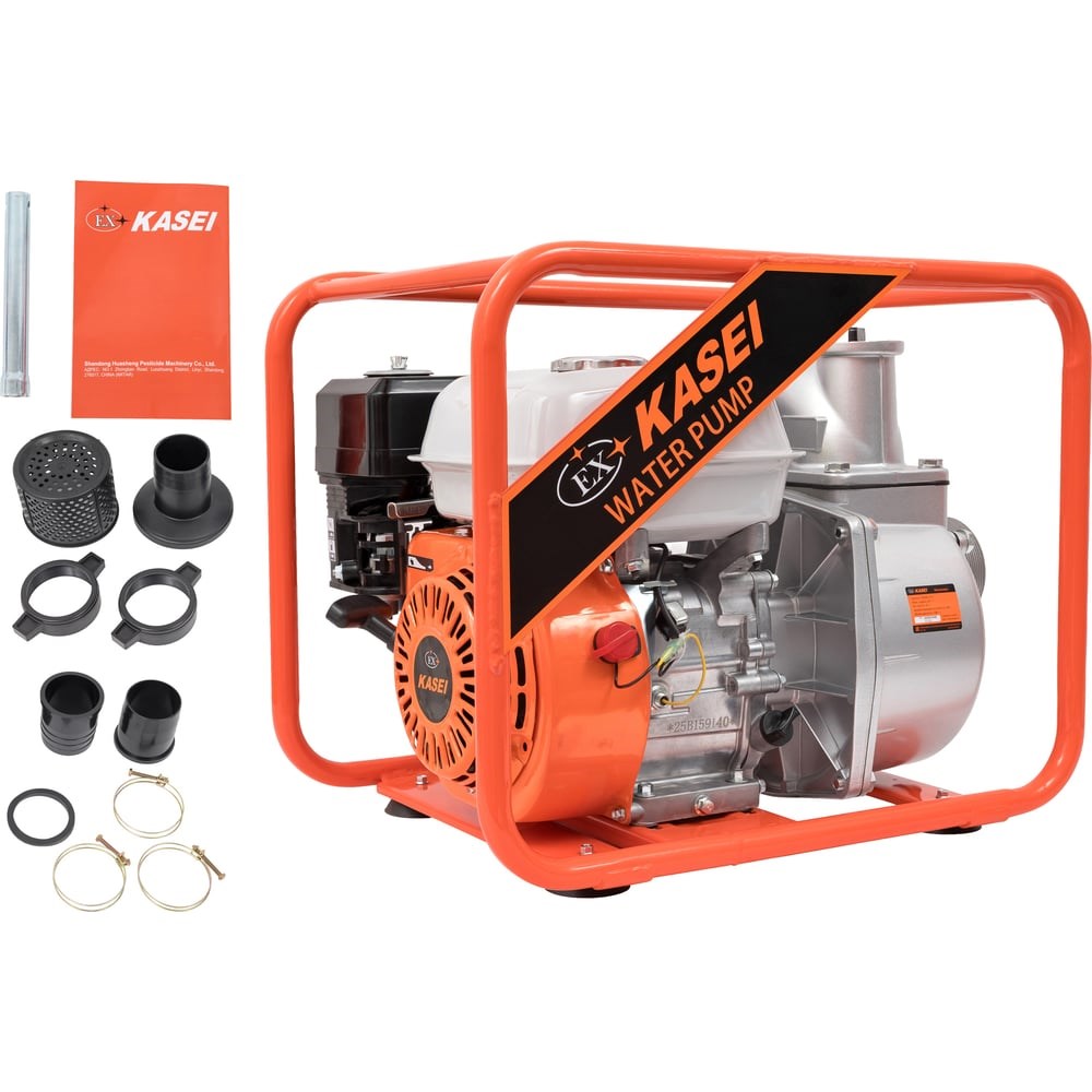 Мотопомпа Ex Kasei с мощностью 5 л.с. и производительностью 1000 л/мин предназначена для перекачки чистой и слабозагрязненной воды. Она оснащена бензиновым 4-тактным двигателем объемом 208 см³, что обеспечивает надежную и эффективную работу. Высота подъема достигает 27 метров, а всасывание возможно с глубины до 5 метров, что делает ее универсальной для различных задач. Диаметр входного и выходного отверстий составляет 80 мм, что способствует быстрому перемещению больших объемов воды. Мотопомпа имеет ручной стартер и рассчитана на 1.6 часа работы на одной заправке, что удобно для использования в полевых условиях.