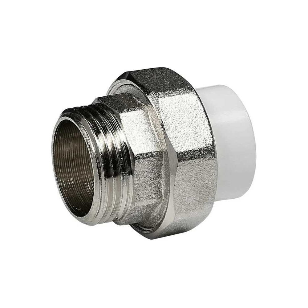 Муфтовое разъемное соединение НР D20-3/4 ПК Контур изготовлено из полипропилена PPR (рандом-сополимер) и латуни. Американка с наружной резьбой (НР) применяется для разъемного соединения между трубой и резьбовым фитингом в процессе монтажа элементов систем водоснабжения (ХВС/ГВС) и отопления. Муфта ПК Контур изготовлена в соответствии с ГОСТ 32415-2013 и выдерживает давление до 10 бар. Монтаж: вход - ПП наружный, выход - латунь, наружная резьба.