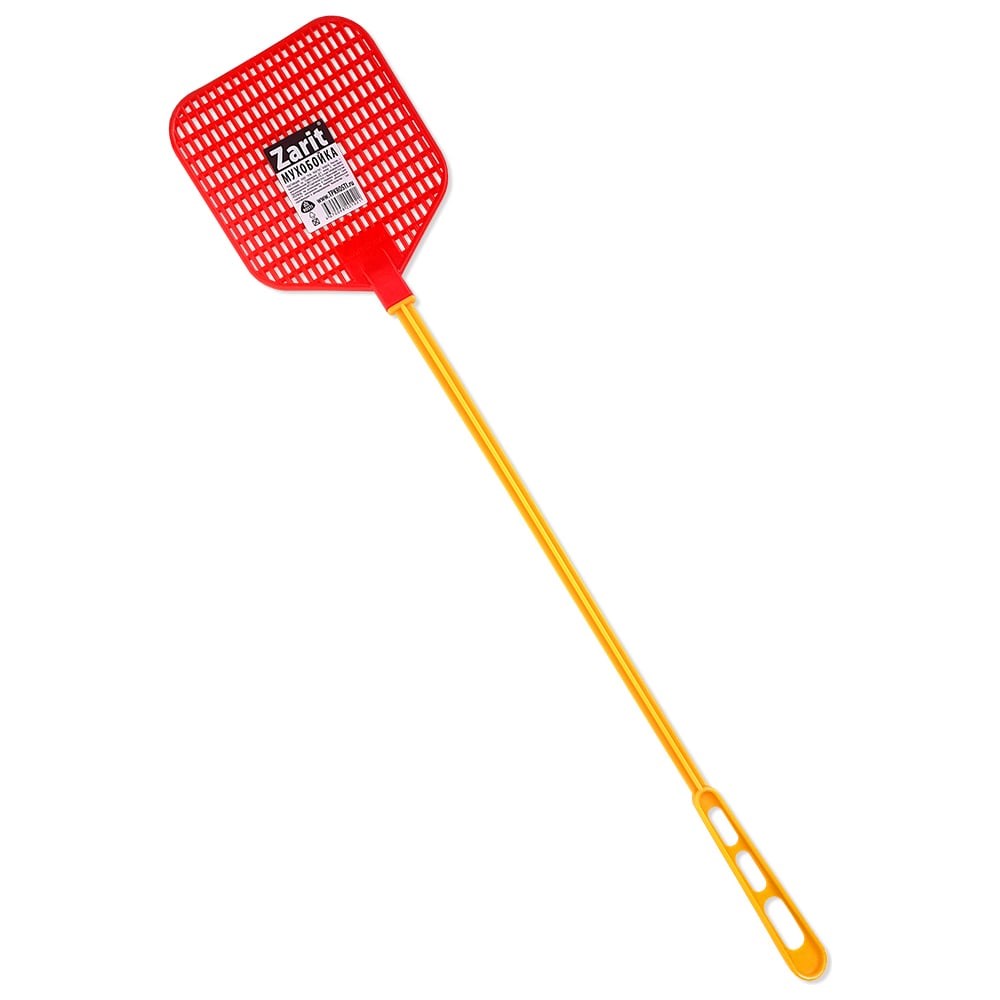 Мухобойка сделана из мягкого пластика. Позволяет совершать быстрые движения. Сетчатое основание имеет мелкие отверстия, что дает улавливать даже мелких насекомых. Мухобойка удобна для удержания в руках. Отличается легким весом и высокой прочностью.