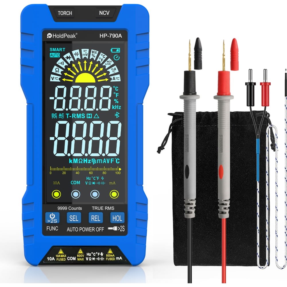 Цифровой мультиметр HoldPeak HP-790A — надёжный универсальный прибор для измерения основных электрических параметров. Подходит как для профессионалов, так и для домашнего использования. Прибор измеряет постоянное и переменное напряжение до 600 В, силу постоянного и переменного тока, сопротивление до 60 МОм, а также выполняет проверку диодов и прозвонку цепей. Удобный ЖК-дисплей с подсветкой обеспечивает хорошую читаемость показаний даже при слабом освещении. Компактный корпус, автоматическое отключение и удобное управление делают HP-790A практичным выбором для электриков, мастеров по ремонту и радиолюбителей.