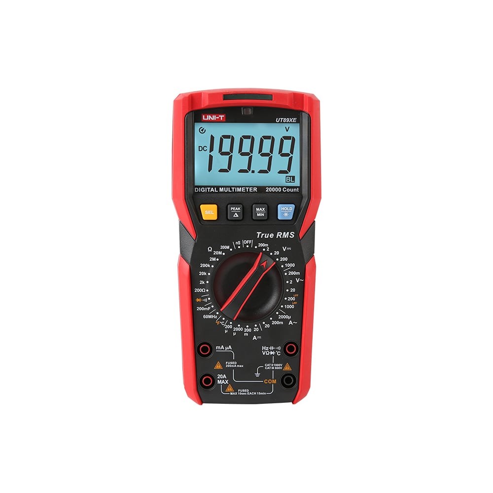 Надежный портативный цифровой мультиметр с разрядностью дисплея 20000 и функцией измерения истинного среднеквадратичного значения синусоиды. Оснащен звуковой и визуальной сигнализацией, фонариком и функциями автоматической подсветки, может использоваться в темных условиях.