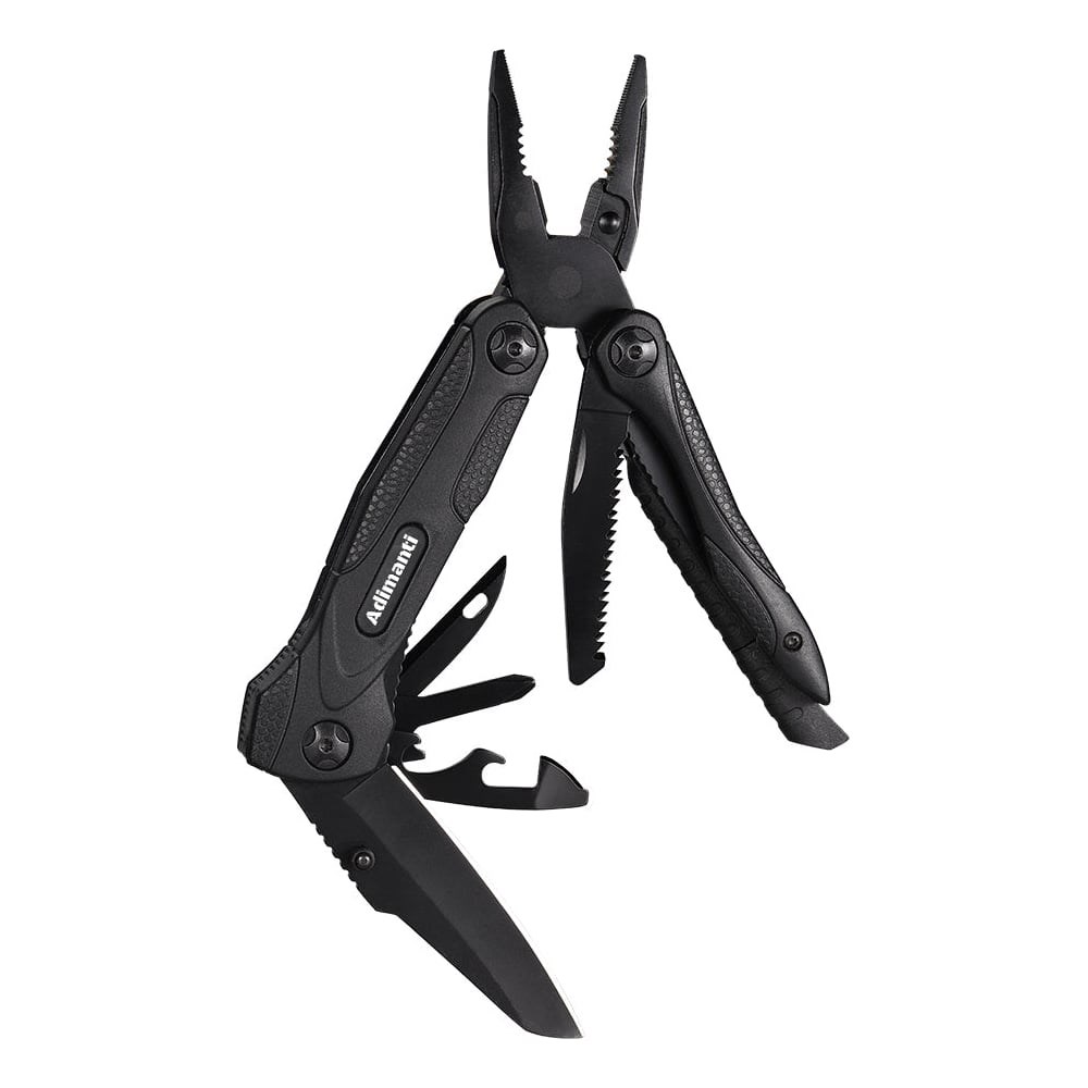 Функцииплоскогубцы; пила; нож с прямым лезвием; плоская и крестовая отвертки; огниво; свисток; шило; инструмент для зачистки проводов; открывалка для бутылок; консервный нож
