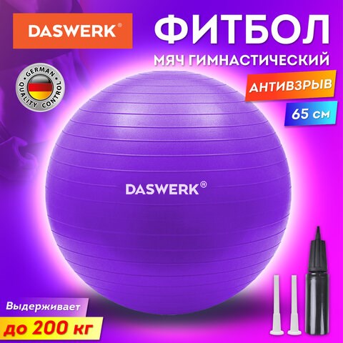 Мяч гимнастический (фитбол) 65 см с эффектом "антивзрыв", с ручным насосом, фиолетовый, DASWERK (ДАСВЕРК), 680017