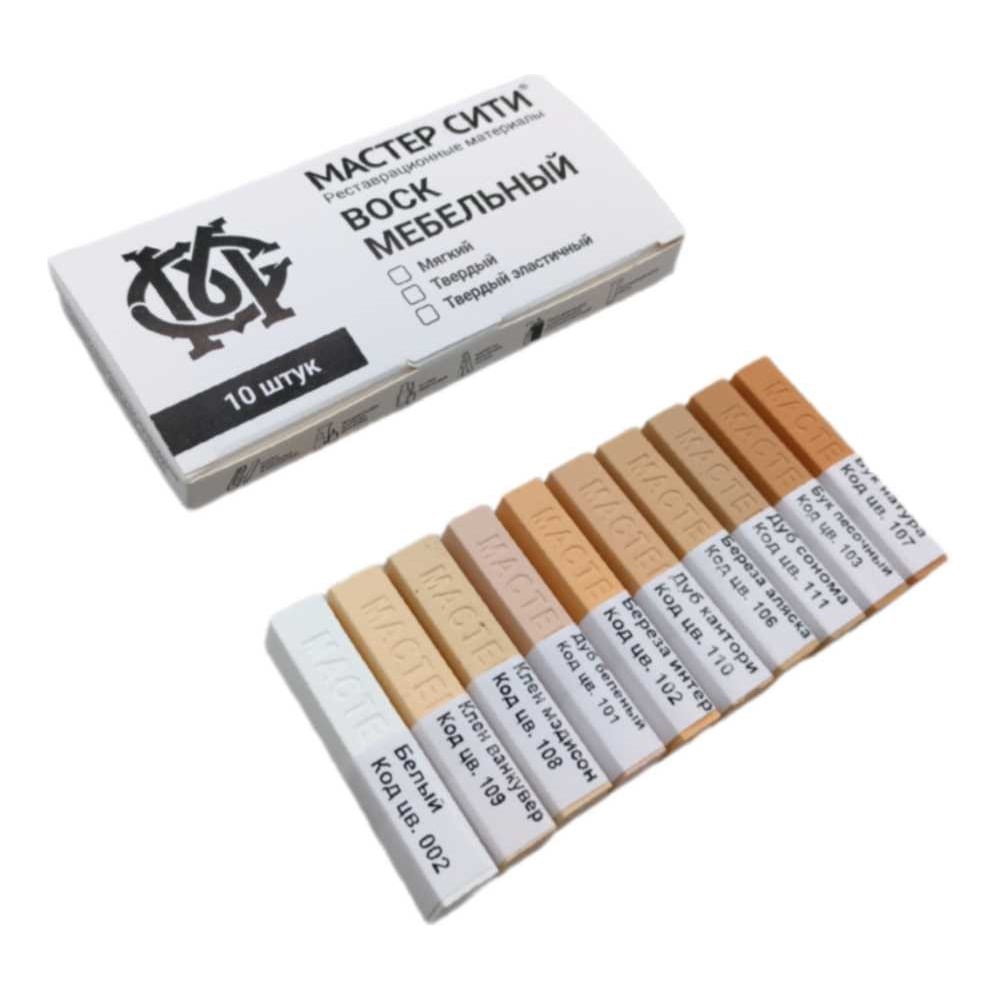 Воск мебельный (восковой мелок) в наборе из 10ти цветов от ведущего российского производителя материалов для реставрации Мастер Сити. Применяйте для ремонта сколов, выбоин и глубоких царапин. Набор идеально подойдет от поврежджений на мебели после ее сборки и установки. Поможет скрыть царапины на напольных покрытиях, и убрать недочеты на дверях и окнах после ремонта. С палитрой из 10ти цветов подобрать цвет к мебели будет удобнее. Также Воски отлично смешиваются между собой. Воск для мебели (мелок) легко втирается, прочно и надолго закрепляется в повреждении, устойчив к деформации, не дает усадки и не выцветает со временем. Воск улучшает внешний вид мебели, скрывает повреждения, сливается с поверхностью, удобно применять в домашнем ремонте. В местах с высокой нагрузкой (напольные покрытия, столешницы) рекомендуем дополнительно защищать место реставрации от загрязнения и деформации Лаком быстросохнущим "Мастер Сити". Мебельный воск (восковой карандаш) для ремонта Мастер Сити полностью готов к применению. Подробную инструкцию читайте на упаковке. Обратите внимание, что экран может искажать цвет продукта. Проверяйте цвет на экранах 2х устройств. ВНИМАНИЕ! При получении Набора проверяйте целостность стикера контроля вскрытия. Набры с поврежденным стикером контроля вскрытия возврату не подлежат! Сверяйте правильность заказа по стикеру с названием набора (не вскрывая упаковку).