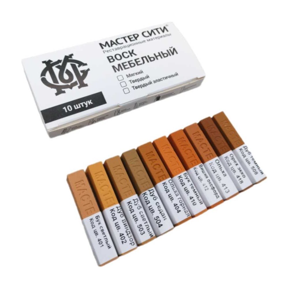 Воск мебельный (восковой мелок) в наборе из 10ти цветов от ведущего российского производителя материалов для реставрации Мастер Сити. Применяйте для ремонта сколов, выбоин и глубоких царапин. Набор идеально подойдет от поврежджений на мебели после ее сборки и установки. Поможет скрыть царапины на напольных покрытиях, и убрать недочеты на дверях и окнах после ремонта. С палитрой из 10ти цветов подобрать цвет к мебели будет удобнее. Также Воски отлично смешиваются между собой. Воск для мебели (мелок) легко втирается, прочно и надолго закрепляется в повреждении, устойчив к деформации, не дает усадки и не выцветает со временем. Воск улучшает внешний вид мебели, скрывает повреждения, сливается с поверхностью, удобно применять в домашнем ремонте. В местах с высокой нагрузкой (напольные покрытия, столешницы) рекомендуем дополнительно защищать место реставрации от загрязнения и деформации Лаком быстросохнущим "Мастер Сити". Мебельный воск (восковой карандаш) для ремонта Мастер Сити полностью готов к применению. Подробную инструкцию читайте на упаковке. Обратите внимание, что экран может искажать цвет продукта. Проверяйте цвет на экранах 2х устройств. ВНИМАНИЕ! При получении Набора проверяйте целостность стикера контроля вскрытия. Набры с поврежденным стикером контроля вскрытия возврату не подлежат! Сверяйте правильность заказа по стикеру с названием набора (не вскрывая упаковку).