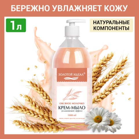 Мыло-крем жидкое 1 л, ЗОЛОТОЙ ИДЕАЛ "Овсяное молочко", дозатор, 609429