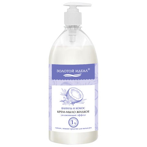 Мыло-крем жидкое 1 л ЗОЛОТОЙ ИДЕАЛ "Ваниль и кокос", дозатор, 608286