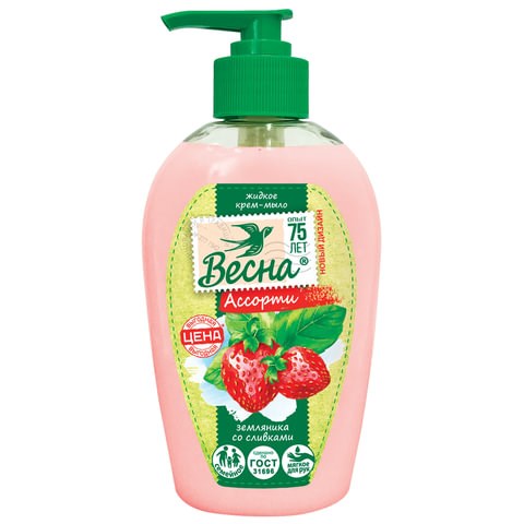 Мыло-крем жидкое 280 мл ВЕСНА "Земляника со сливками", дозатор, ГОСТ, 5099