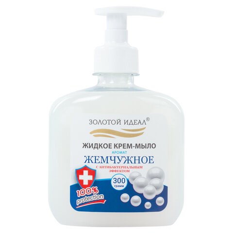 Мыло-крем жидкое 300 г ЗОЛОТОЙ ИДЕАЛ "Жемчужное", с антибактериальным эффектом, дозатор, 606780