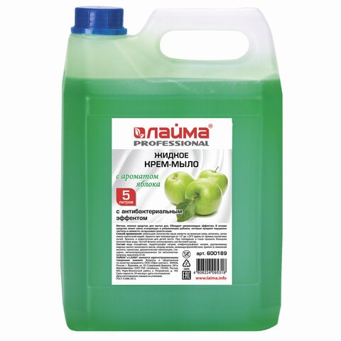 Мыло-крем жидкое 5 л, ЛАЙМА PROFESSIONAL "Яблоко", с антибактериальным эффектом, 600189